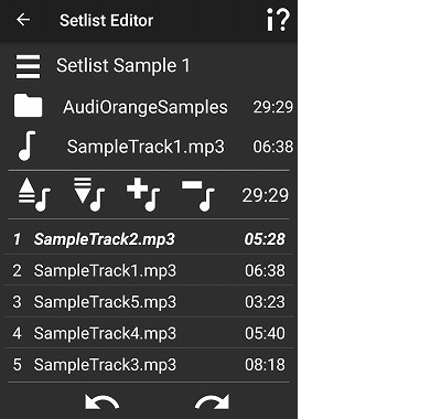 Tap the setlist you want to handle in the list and turn it selected. The selected setlist will be displayed in bold and italics. Then, tap Add, Edit, Delete, Undo, and Redo to handle and manage your setlists.